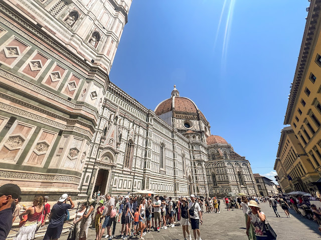 When we planned our visit to Florence, we decided not to stay right in Florence. Instead, we stayed in an incredibly charming town up in the hills overlooking Florence called Fiesole. It was a great choice! It was small with a quaint center piazza, narrow roads, cute homes, historic sites and an easy bus ride to Florence for about $2 a person. We arrived in Fiesole on Wednesday afternoon and checked into out super cute Airbnb. While is was incredibly cute and charming, it was a mechanical fiasco. The air conditioning wasn't working so we spent quite while on WhatsApp with the rental company who had someone out to the place in about an hour and a half. They got it working, but it worked for a bout 3 hours and shut off again. Air conditioning isn't the priority in Europe as it is in the US so you sometimes just have to go with the flow - or no flow in regard to our air unit!
